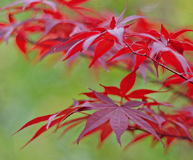 ゲートのように枝葉を広げるモミジが印象的な沿道景観。
