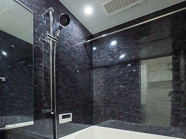 - 優雅なバスタイムを演出する全面化粧パネルとダウンライトを採用しています。