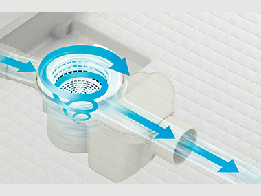 参考イラスト- 排水溝にたまったゴミが捨てやすい、お掃除が簡単な排水口を採用しております。